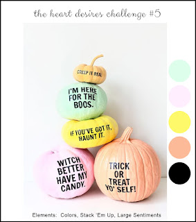 There were a number of ways to be inspired by the photo (see below) but since I needed a Halloween birthday card for a friend I stacked up these W & W pumpkins and colored them with Distress Ink. I thought the face from Peachy Keen went well with the MFT sentiment.