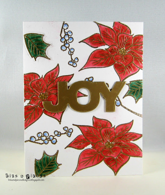 Beautiful card, Bobby. Love the 'joy' die-cut ... it in gold and the gold embossing are perfect.
