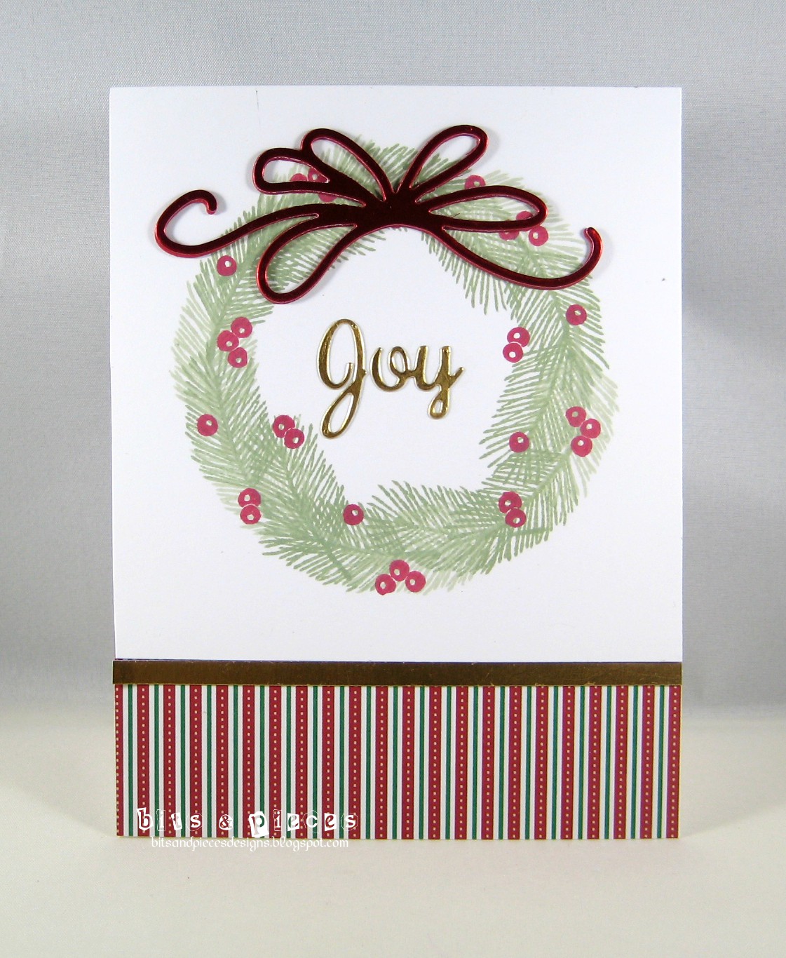 ReplyDeleteBeautiful card! I love the stripes on the bottom, and your wreath is perfect. Have you seen the new Gina K wreath builder template? It would make quick work of this image.