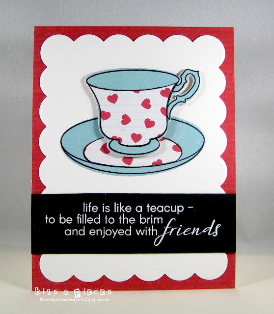 The Altenew tea cup was paper pieced and the sentiment heat embossed. I'd enjoy having a cup of tea with any of my bloggie friends. How do you take yours?
