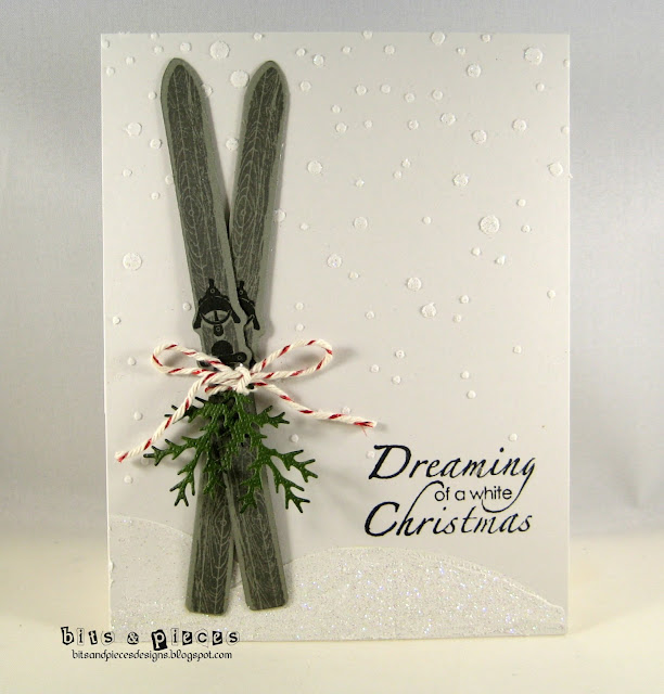 Wouldn't you know I made a card with skis just last week that you can see here.  I decided to give an entirely different feel to this one.