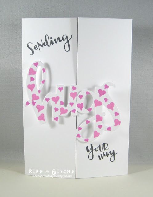 I got out my seldom used hugs card die from Concord and 9th and stamped hearts on it. Have you seen this die? The card opens like this: