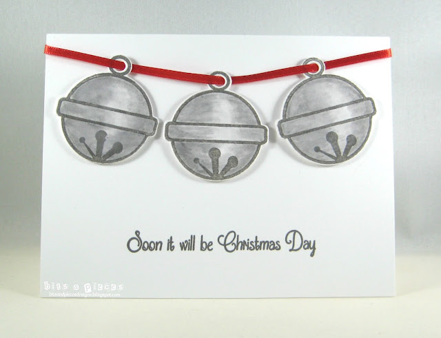 I haven't used these bells from CASual Fridays in along time. I stamped them in VersaFine Gray on Bristol and colored them with Zigs. The sentiment is from the same stamp set.
