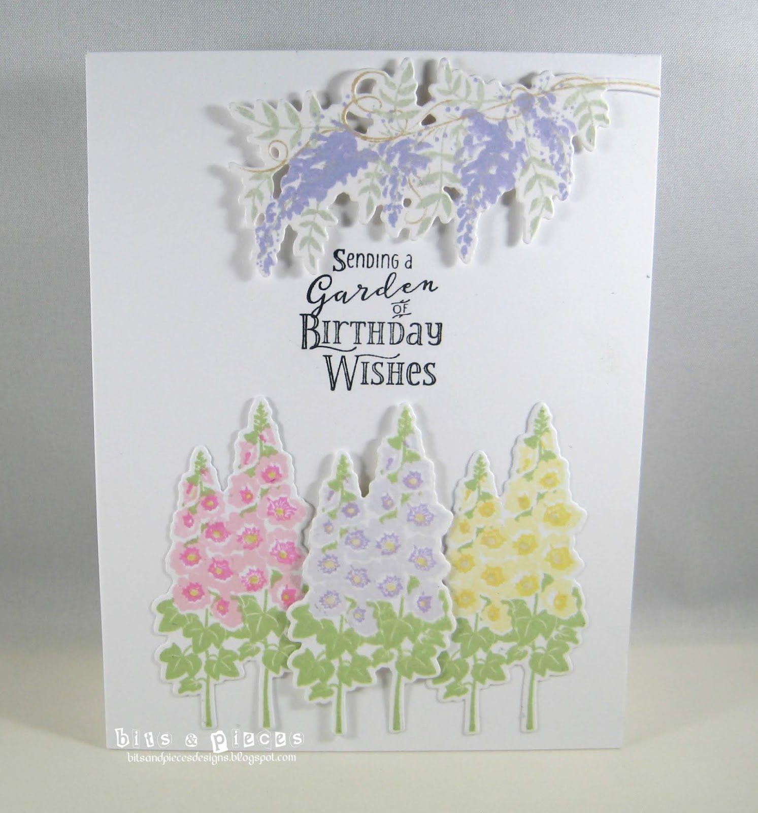 For my prayer card I used just one set of flowers and added some wisteria on an MFT die cut that was embossed with a SU folder and popped up on lavender cs.
